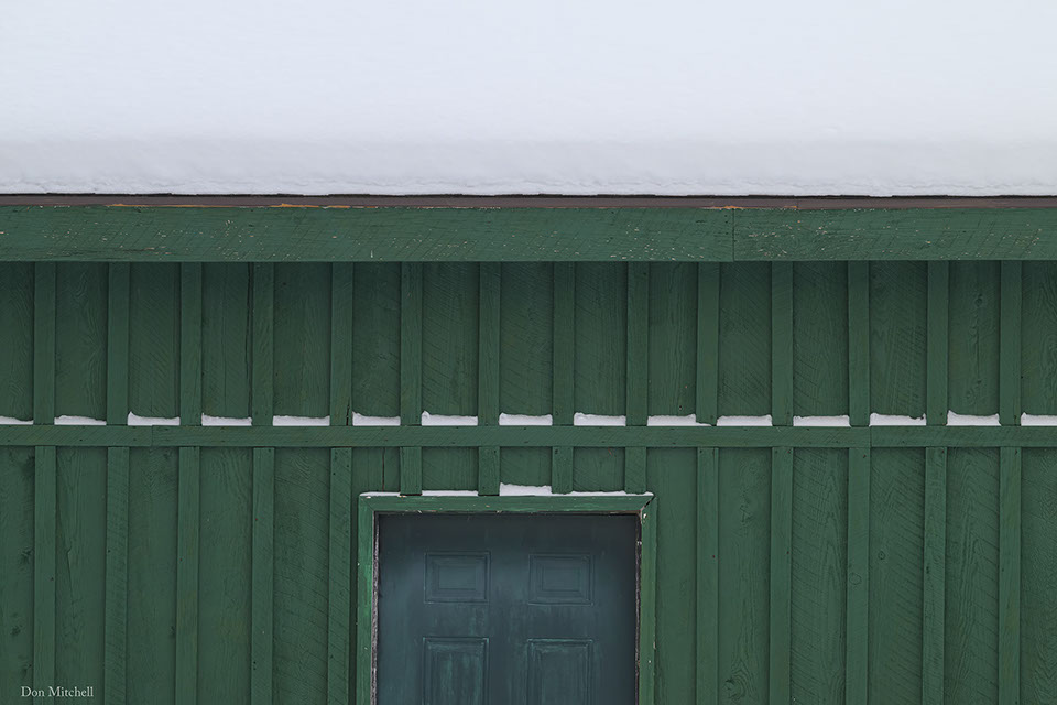 Peacock house, with snow.