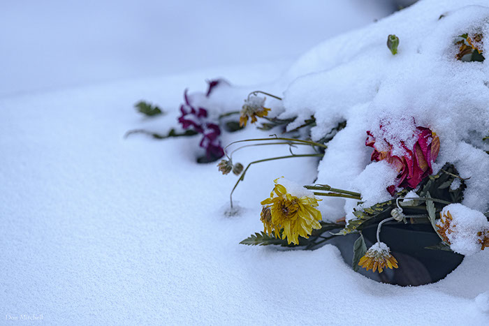 The arrangement from two days ago still has some color.