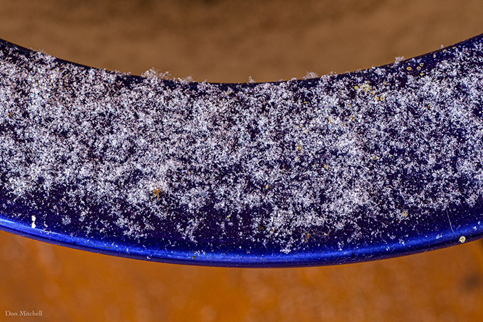I've been waiting for snow to collect on the rim of my mother's blue Chinese pot. Last night, it did.