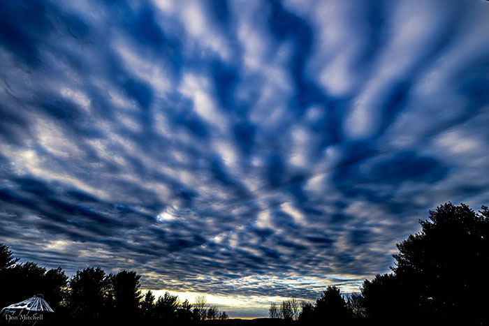 An interesting sky this morning. I wonder what phenomenon caused the angled "rips."