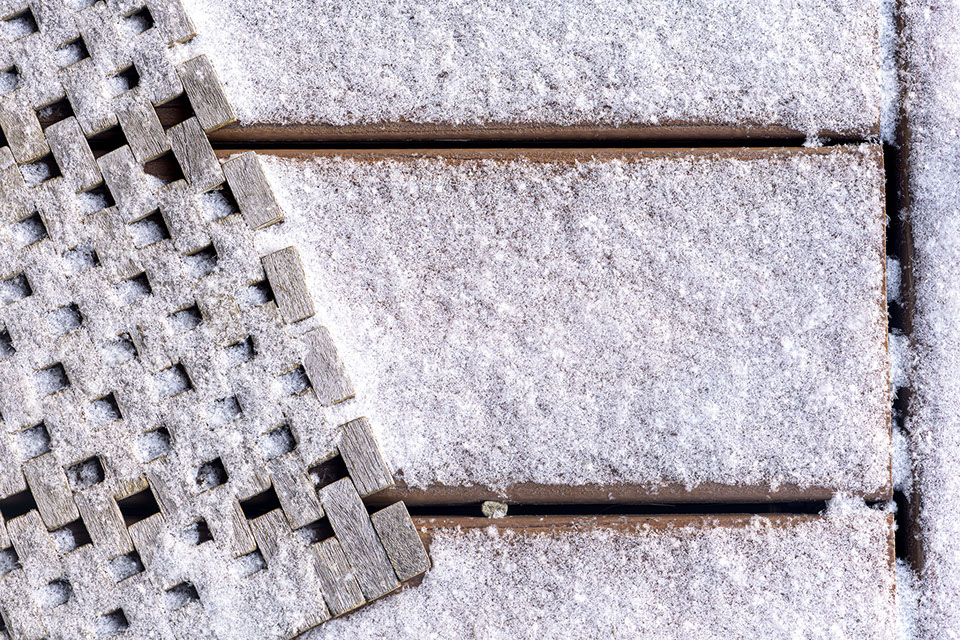 Eight degrees on the morning of the 8th. Coldest we've ever seen here. A teak mat from Hilo endures.