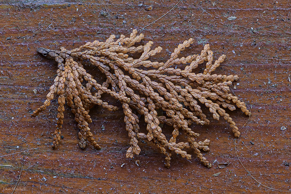 Looks like some kind of critter, but it's just a bit of cedar, blown onto the porch.