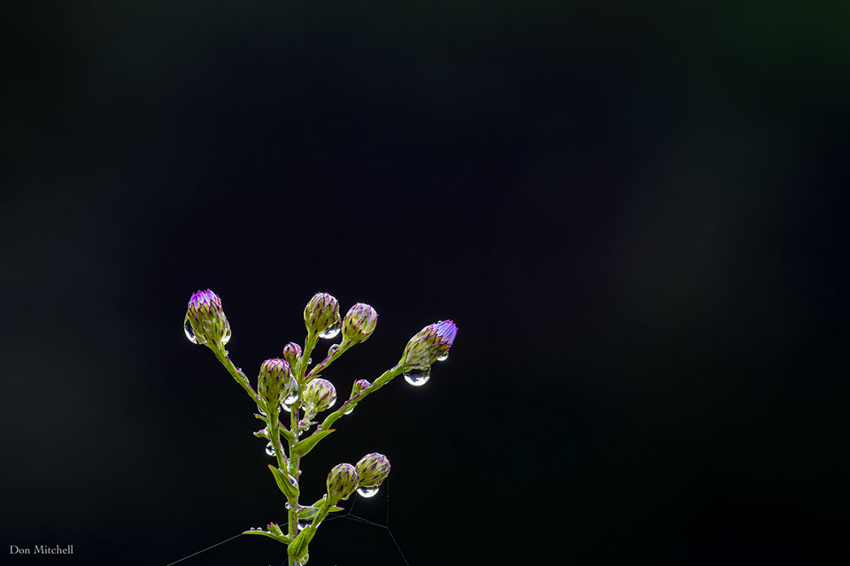 Asters on a rainy dark morning.