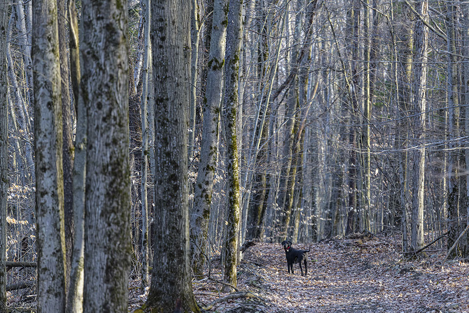 Tommy on the trail into the upper woods.