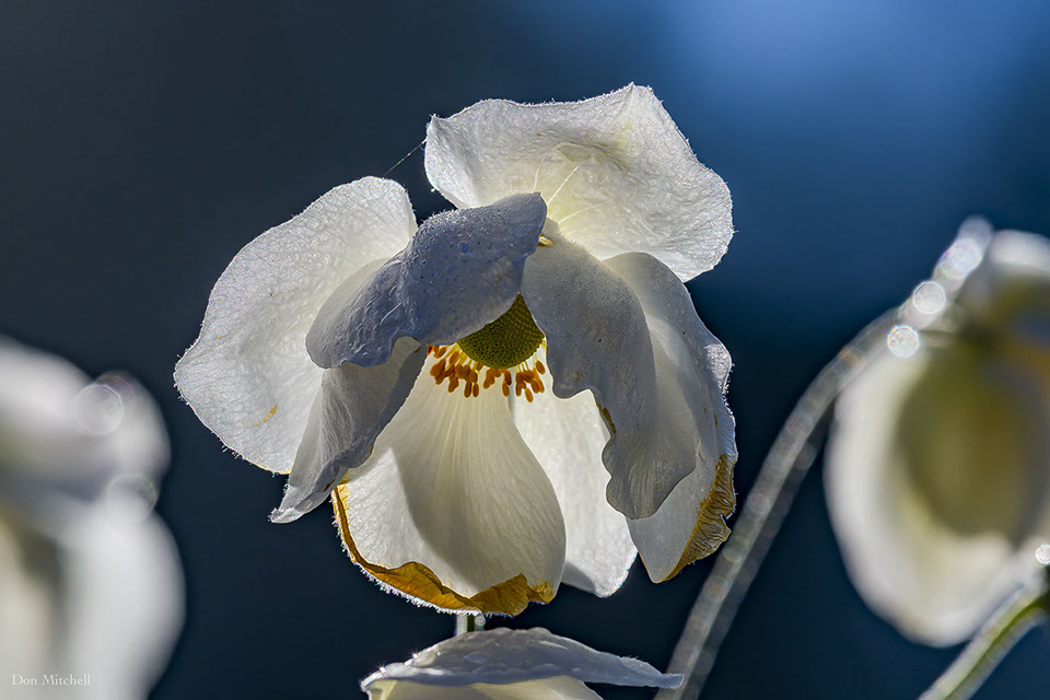 Japanese anemone back-lit by (welcome) sun.