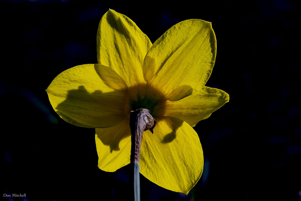 Backlit daffodil from the back.