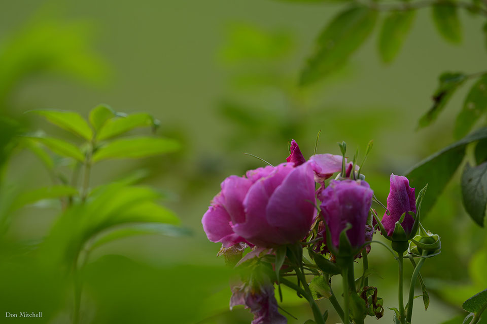 Rose bud behind rose.