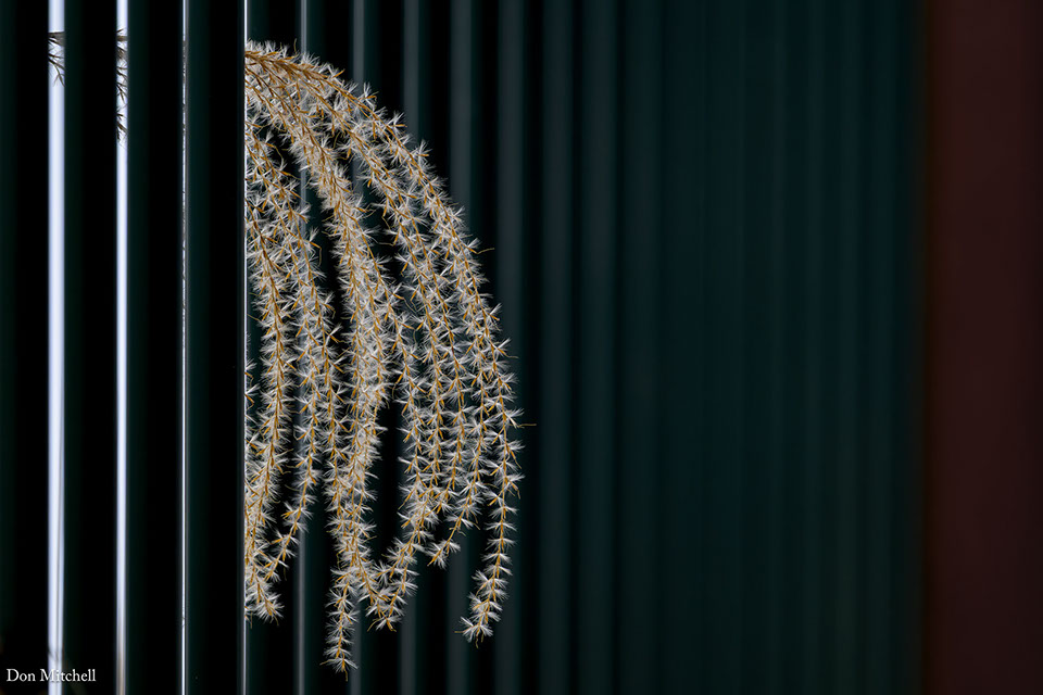 Grass and porch railing.