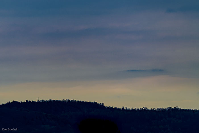 This is going to be an interesting place to shoot. In Hilo, my long view was to the E/NE, so the rising sun was usually in there somewhere (unless it was raining). But here, my long view is almost directly south. I focused on the ridgeline -- and found trees, as expected, but also an antenna tower. Many years ago I had a 1000 mm lens. It would be fun to have it back again. I do have a lens doubler but haven't used it with the 500 yet. There's plenty of time.