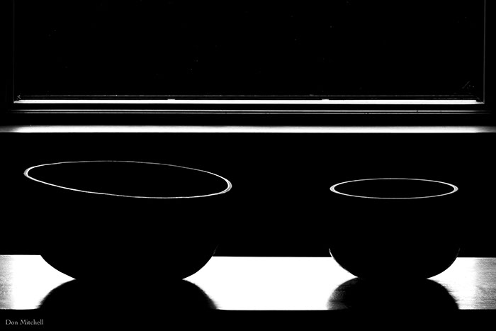 Ruth's singing bowls on a her koa table. Usually I try to keep detail in the highlights, but this morning I liked the image better after I blew them out.