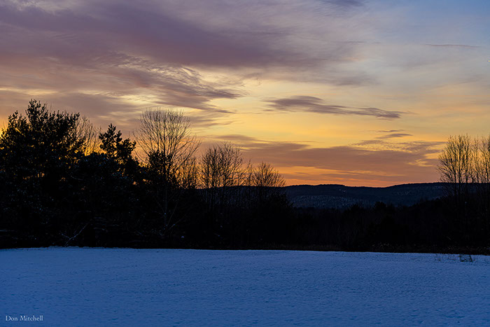 Sunrise over the night's new snow.