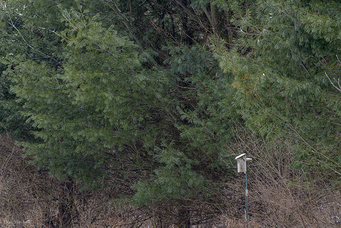 A gloomy morning up here on the ridge. Here's a birdhouse waiting for occupants.