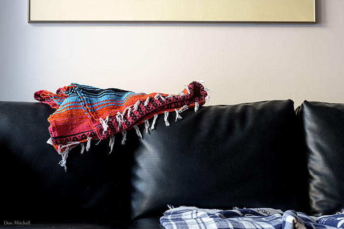 It was 5 degrees outside, so this Hawai'i boy shot inside. The blanket looked rather crocodilian.
