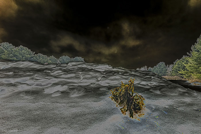 Not much to see, but some wind-sculptured snow and a dead bouquet seemed interesting.