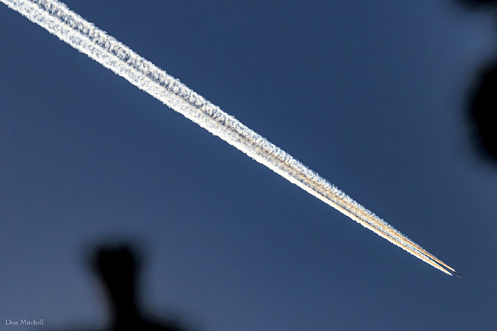 I was shooting a tree. Then I looked up . . . this is what contrails at 1/8000 second look like.