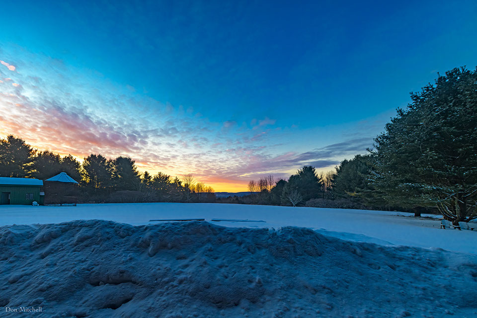 Sunrise with snowbank. This is the snow that's come off the solar panels (with my help).