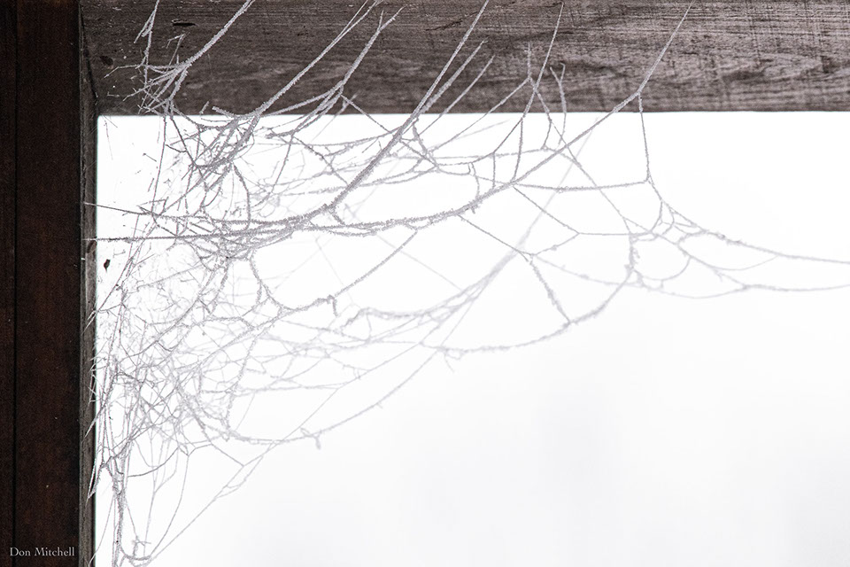 Spider webbing with ice and snow.