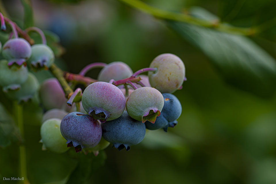 Blueberries. I've never understood how there can be so much ripening variation on a single stem.
