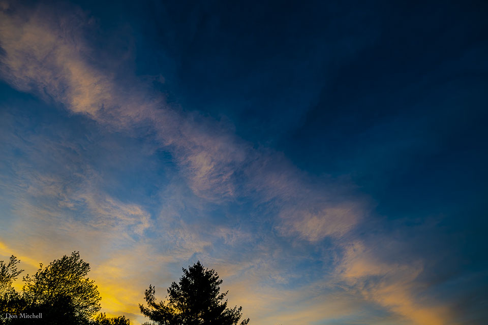 A nice cloud diagonal wall against the dark blue across the early morning sky.