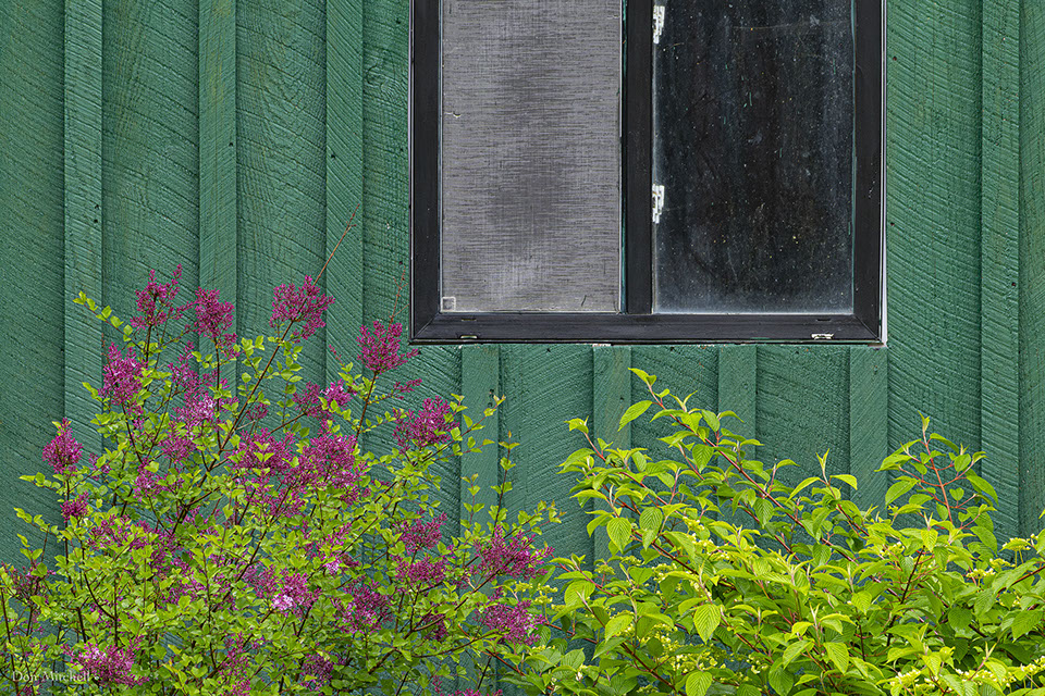 Rain, wind, 42 degrees...so of course I shot from shelter. The lilacs and viburnum are doing well. So is the 560mm lens.