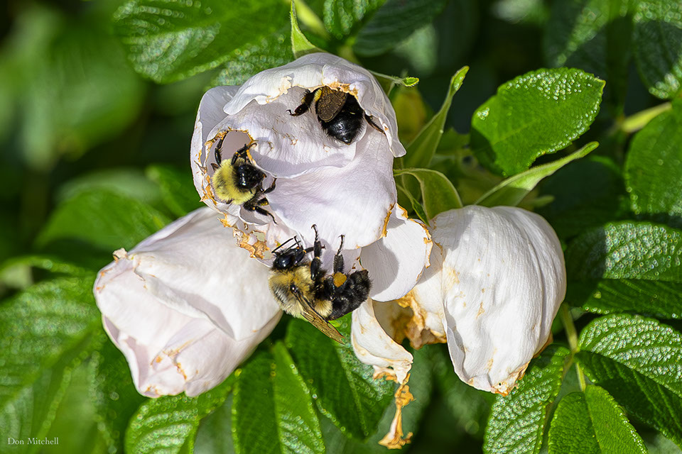 Three buds, three bees.